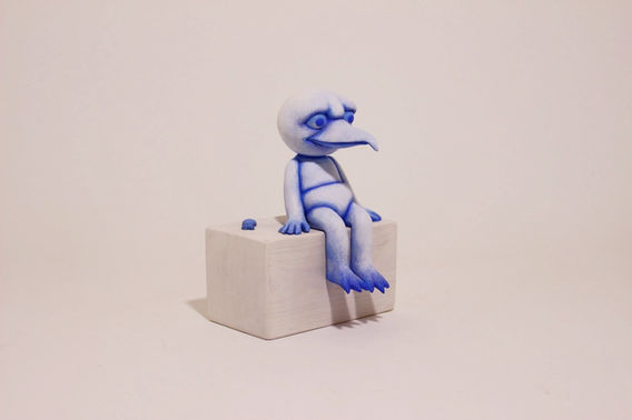テラコッタ、アクリル絵具、木