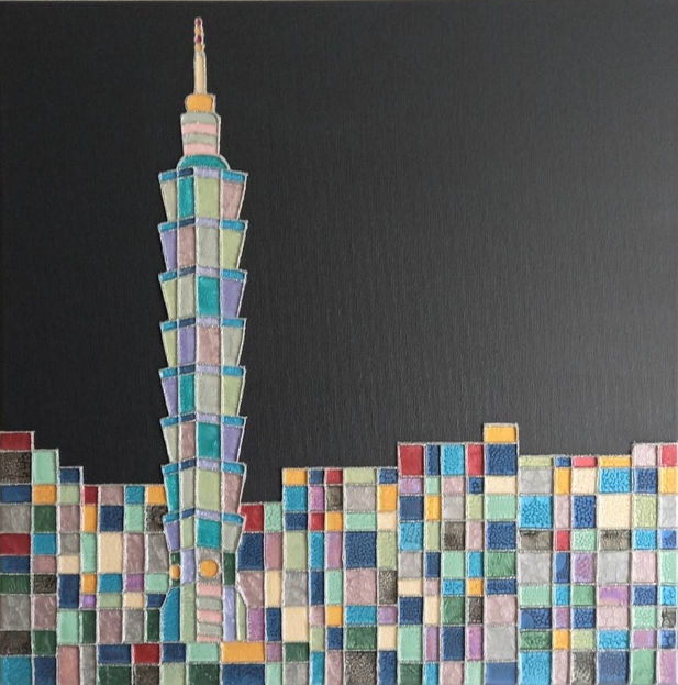 アルキド樹脂やグリッターを用いた半立体的な画面は、